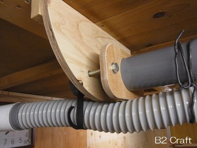 真直ぐ伸びた集塵ダクト、天井を張るのに外していましたがどうやって